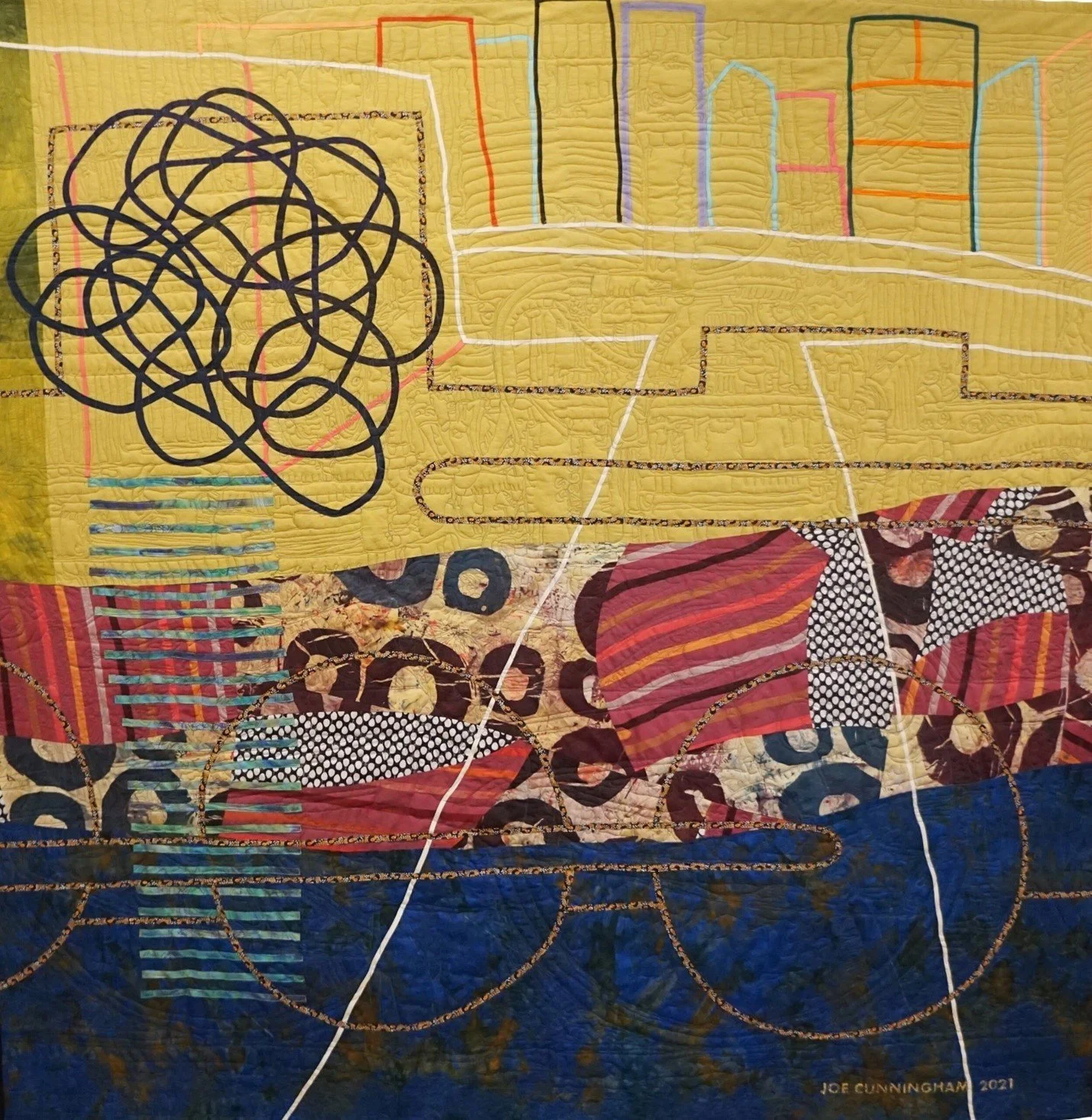 Joe began making quilts in his hometown of Flint, Michigan. He eventually moved to San Francisco where he maintains a gallery/studio to make and show his quilts. He lives with his wife, Carol LeMaitre, above her Pilates studio, Sanchez Street Studios. Cunningham travels the world to show quilts and teach as well as teaching his popular online classes from his studio.