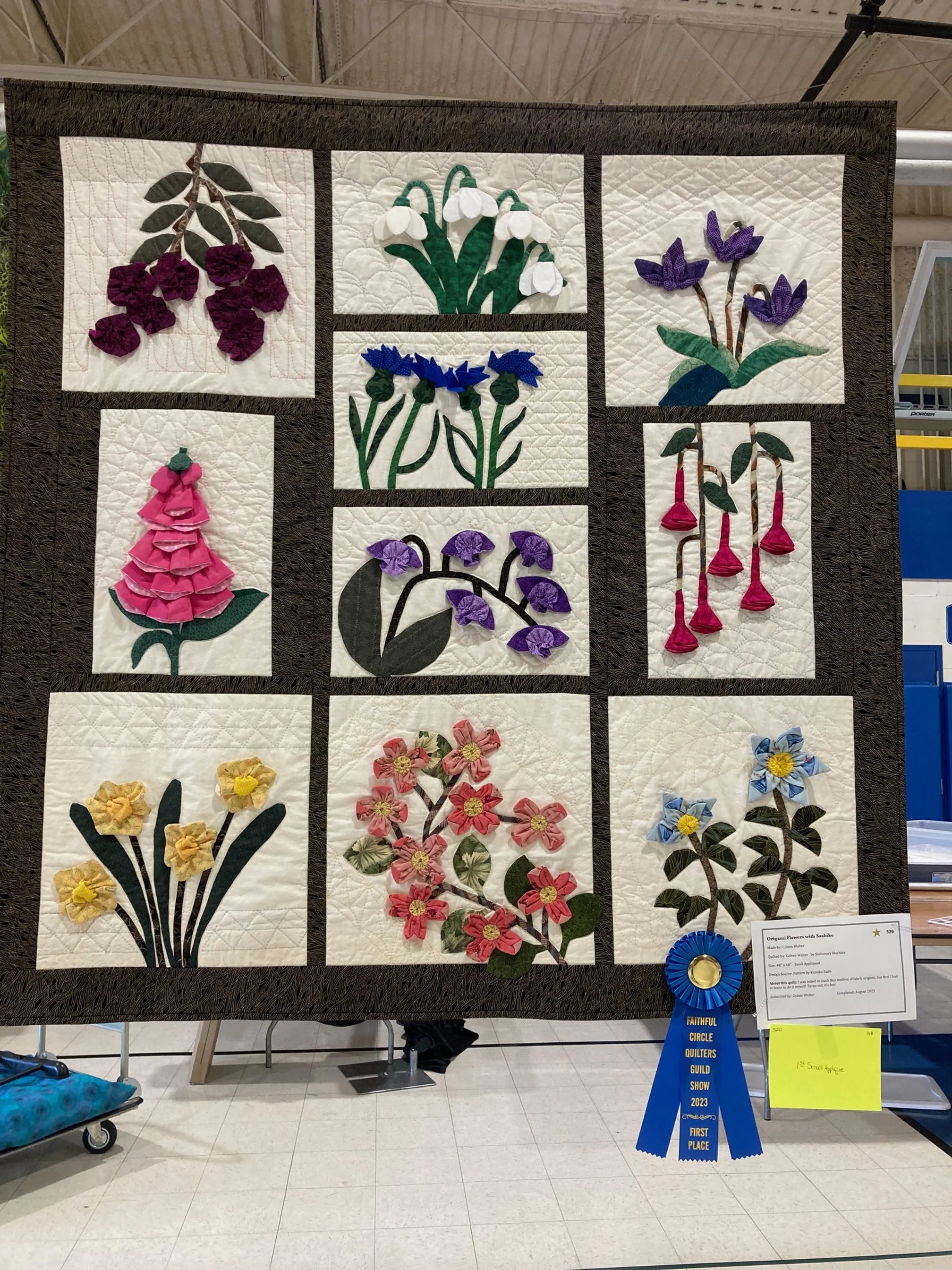 This is a technique class. You will be making several different fabric origami flower blossoms. I will provide you with patterns and directions for 9 different flowers (Daffodil, Wild Begonia, Columbine, Dogtooth Violet, Dogwood, Snowdrop, Fountain Plant, Orchid, & Corn Flower). You will then be able to design your own wall hanging, quilt, table runner, table mat, mug rug, etc. This is your chance to play and design something original.