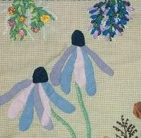 Early on I used embroidery to add details to my quilts then in 1992 I heard about silk ribbon and was intrigued. A friend gave me some to try, and I was soon hooked. It proved to be the perfect addition to my pictorial prairie quilts and the free-cut applique style I was developing. By 1995 I had written a book on silk ribbon, geared especially toward quilters for the American Quilters Society. It is entitled "Nature, Design & Silk Ribbons" and includes some history and historic uses for silk ribbon. While doing research for this book I developed a slide lecture of all the historic sites I visited in the eastern part of the country, this lecture is called "Cathy's Silk Road". Needlework and my interest in fiber has also blended well with the historic re-enactments that I have been a part of for over 40 years now. While most of the historic festivals I participate in are set in the 18th century - I also do some from the Lewis & Clark Era, one Civil War event.