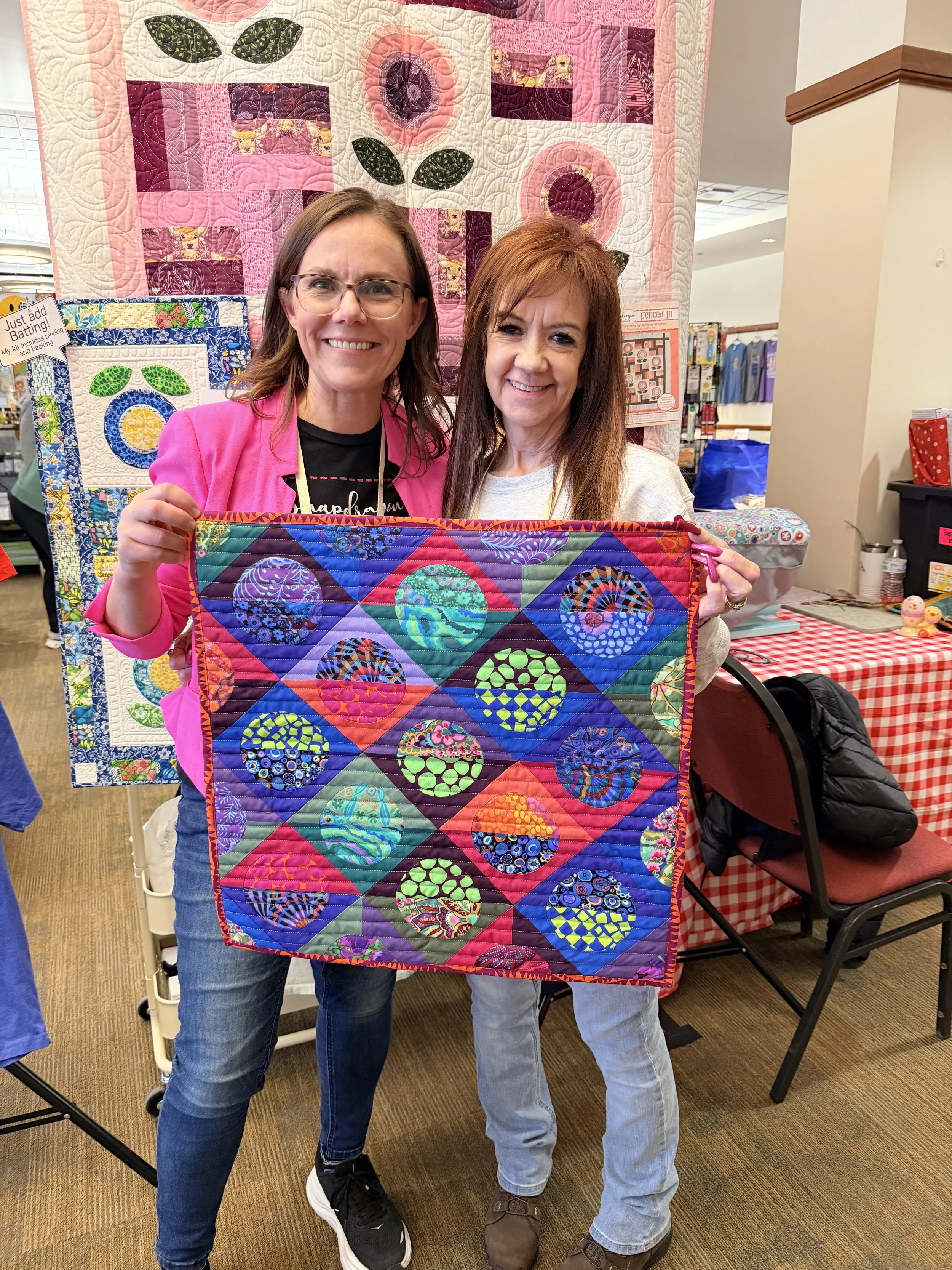 Hi! I’m Jen Wagner, a quilt pattern designer and instructor from Las Vegas, NV, with a background as a women’s health nurse practitioner and certified nurse midwife. After decades of helping women make informed health decisions, I now have the joy of helping quilters create quilts they love. My patterns blend modern and traditional techniques while embracing bold design and vibrant color. Teaching quilters the techniques I use in my patterns—curved piecing, reverse appliqué, and foundation paper piecing—has been incredibly rewarding. I love seeing the moment when everything clicks and they fall in love with the process. At Snapdragon Quilting, I design quilt patterns, curate gorgeous quilt kits, and stock my favorite notions to make the quilting process smoother and more enjoyable. I’m honored to work with beautiful fabrics, tools, and threads as a BenartExpert with Benartex Fabrics, an Oliso Ambassador, and a Threaducator for WonderFil, sharing inspiration, techniques, and tips with quilters everywhere.