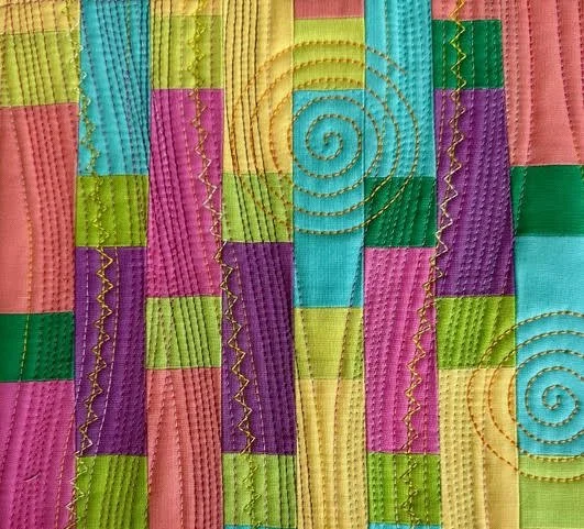 Learn how to finish your quilts on a domestic machine while enjoying all the control of your walking foot. We will start with a brief discussion of preparing your tops for quilting including marking and basting. Then we will make stitched samples of different styles including modern grids, matchstick quilting and spirals. Finish with a look at Catherine’s work to inspire you to go home & turn your tops into quilts. As seen on QATV series 1400/ QA International Quilt Festival Scene 2014/ DVD Modern Machine Quilting.